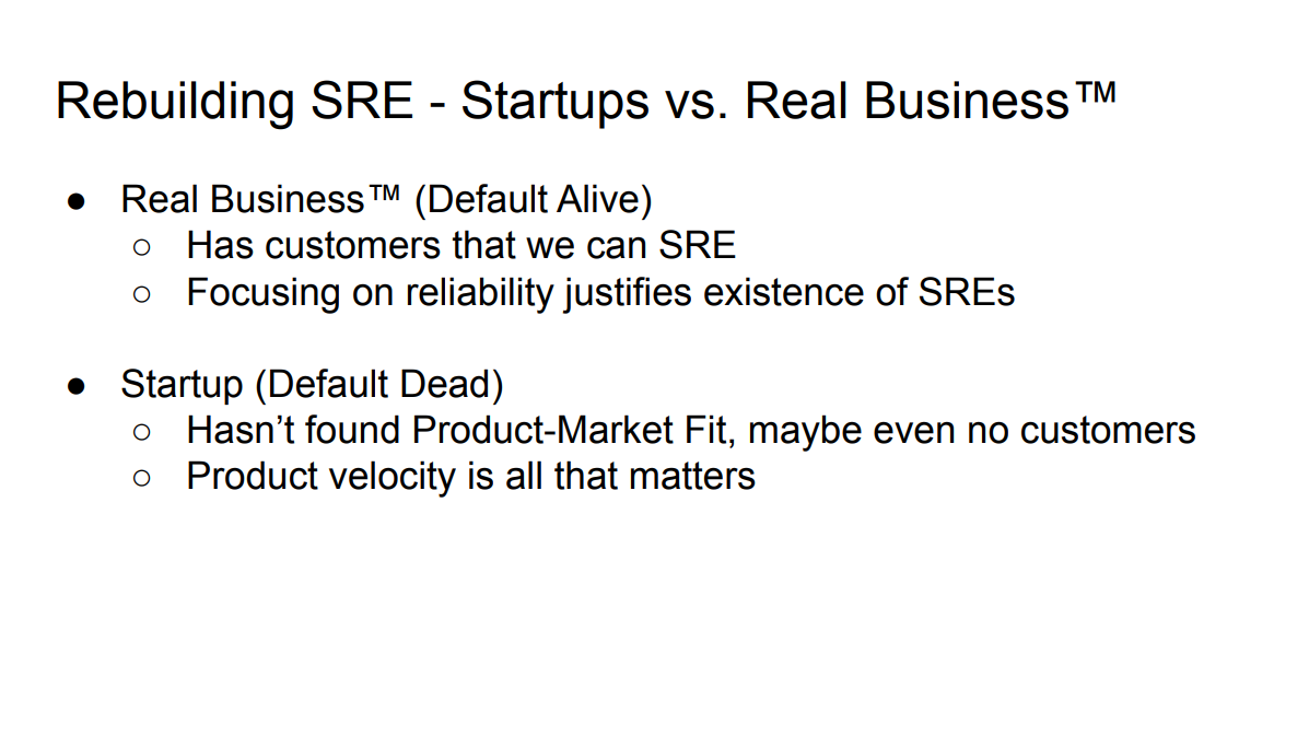 There is likely a strong bias going on into some of their research here that might be skewing the results. Other talks had highlighted how reliability for a startup can be very different from reliability for an established company. Sometimes reliability is a feature.