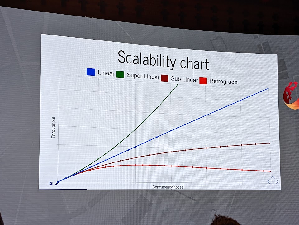 A talk called “The Math of Scalability” started, unsurprisingly, by explaining scale but also how we as people can rarely properly comprehend the numbers of scale. Things that seem logical can and do make things slower at times.